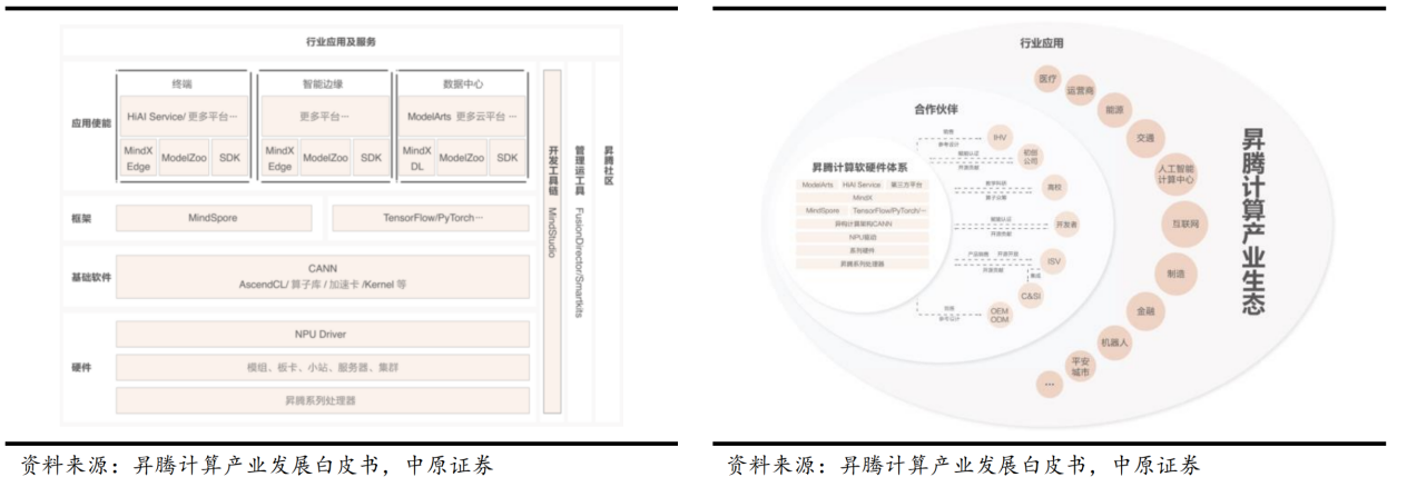 图表7:昇腾计算系统架构框图(左)昇腾计算产业生态图(右)