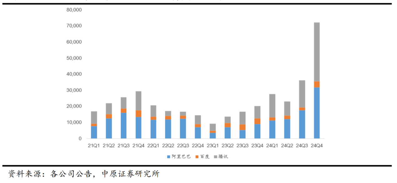 图表1:2021-2024年国内三大互联网厂商资本开支情况(百万元)