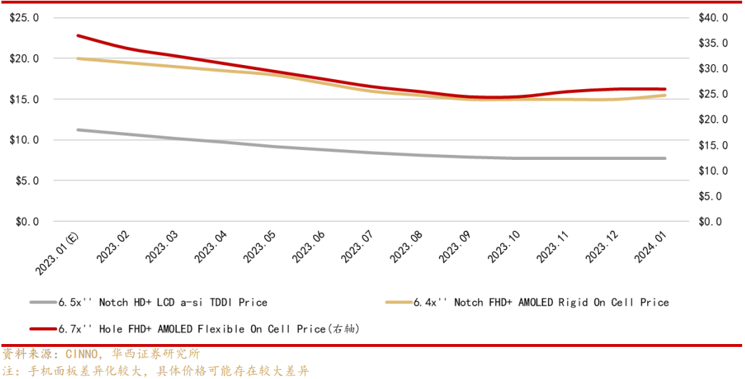 OLED面板涨价同样源于供需关系的改善。根据集微网信息,受需求高涨影响,面板产能出现结构性紧缺,2023 年四季度部分产品价格回暖趋势明显。另一方面因产能结构的不断优化,供需关系好转,各模组厂产能均出现紧张情况。