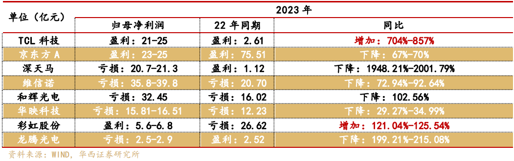 ①2023年公司归母净利润预计同比增长704%-857%,主要得益于半导体显示业务的主要产品LCD TV面板价格在3-4Q23保持在较高水平。