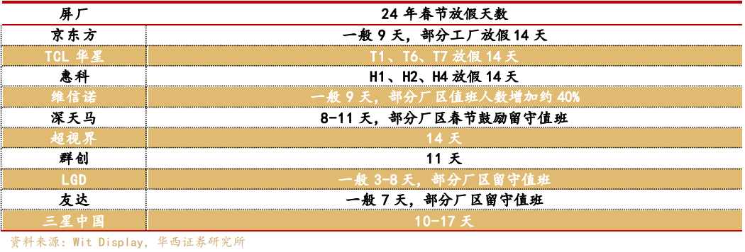 主流屏厂动态控产有利于行业长期的发展,避免过去出现的巨额亏损的情况再出现。随着中国大陆地区屏厂动态调控让价格回归理性,中国台湾地区屏厂也加入调控步伐,根据 Wit Display 2023年12月的信息,群创、友达均表示,会针对市场状况,动态调整产能利用率,让产业秩序更趋于健康。面对Q1的传统淡季,面板厂也利用假期机会对稼动率进行调控,以保证价格平稳反弹。