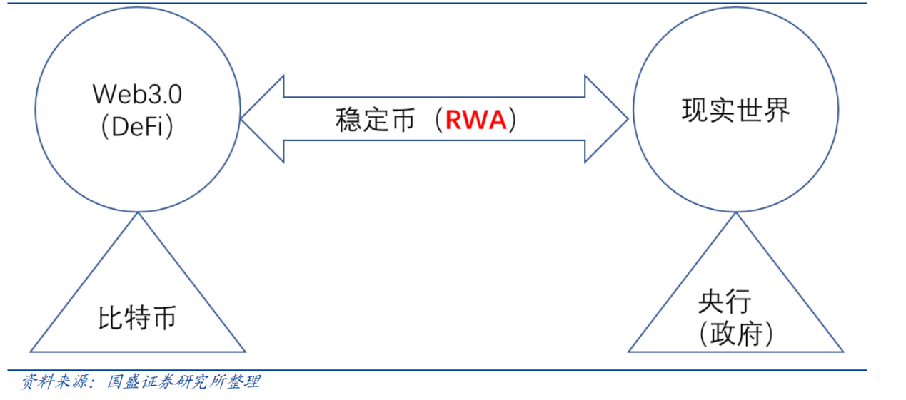 图表2:RWA以稳定币等资产作为媒介,连接Web3.0与现实世界的经济桥梁