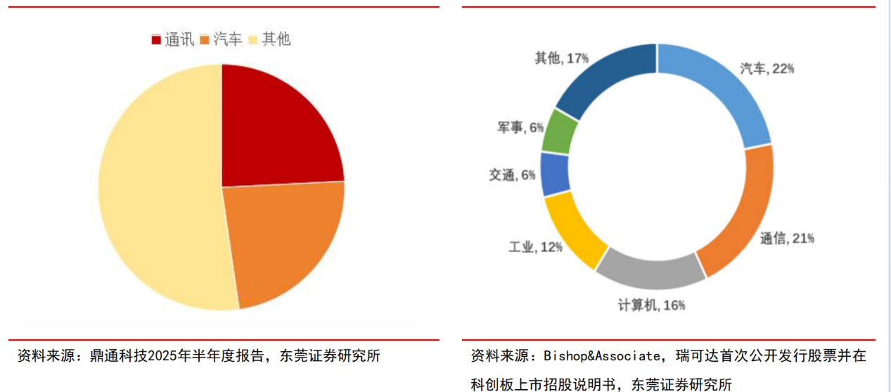 图4:2024年我国连接器按下游应用划分市场占比(左)全球连接器按下游应用划分市场占比(右)