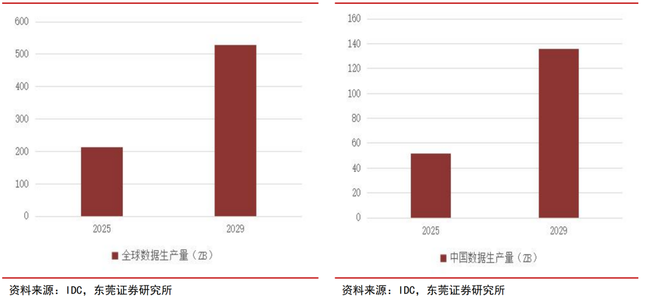 图6:2025-2029年全球数据生成量(左)2025-2029年中国数据生成量(右)