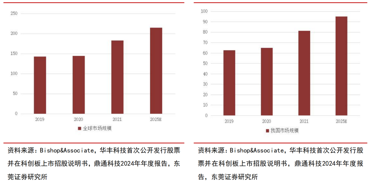图7:全球通讯连接器市场规模(亿美元)(左)我国通讯连接器市场规模(亿美元)(右)