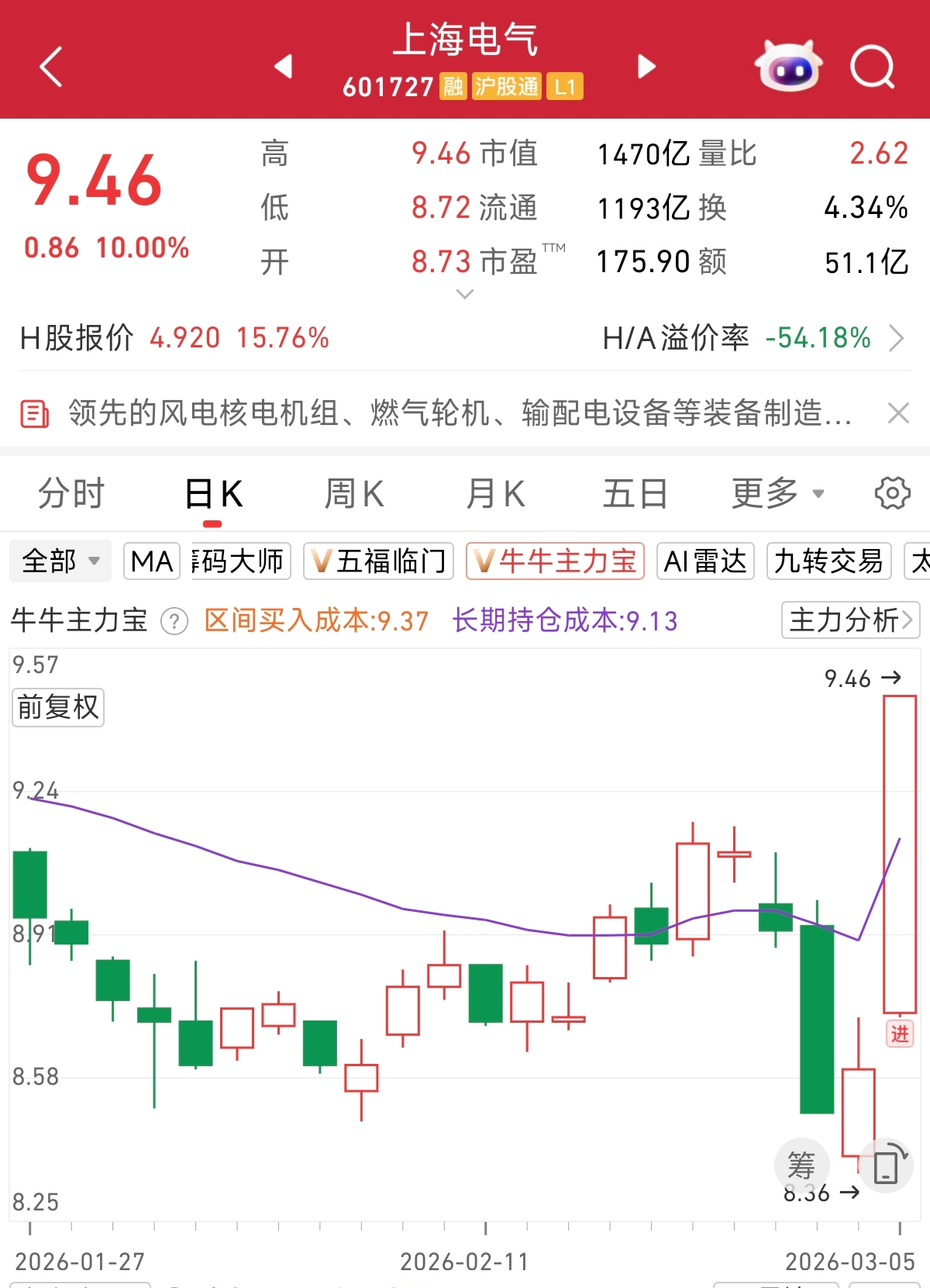 根据主力宝监控,今日大涨的上海电气,在当日出现主力进场信号,感兴趣的朋友可以自行跟踪判断。