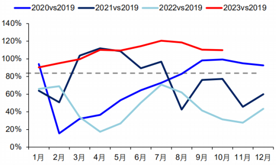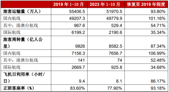 中国民航 2023 年 1-10 月部分生产指标恢复情况