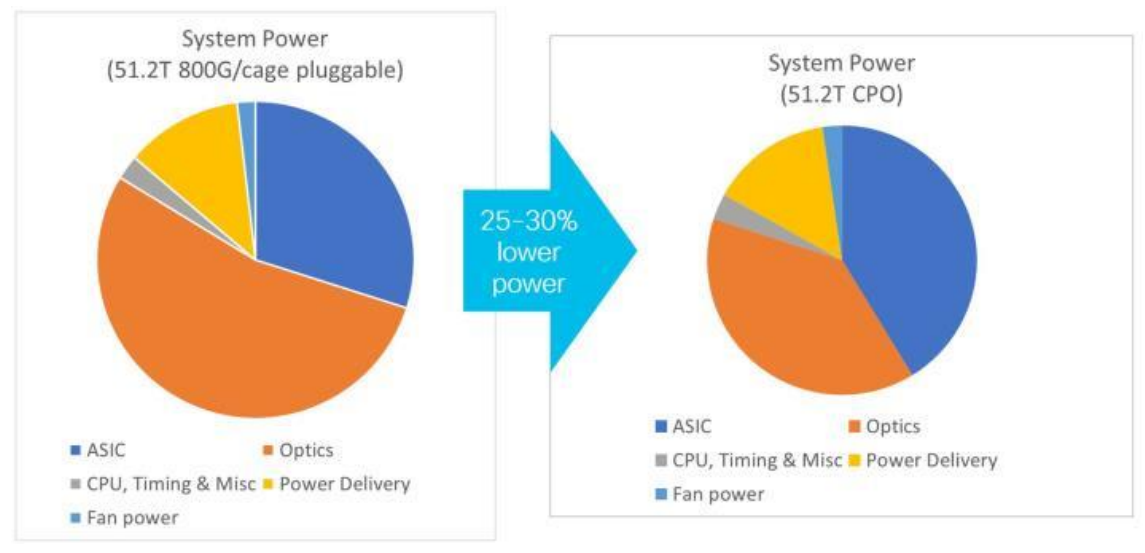 图表1:从Pluggable到CPO的51.2T系统功耗降低