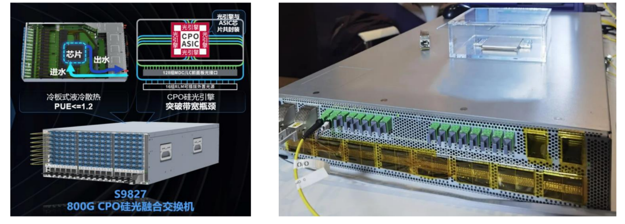 图表5:新华三800G CPO硅光交换机(左) 锐捷网络25.6T CPO交换机(右)
