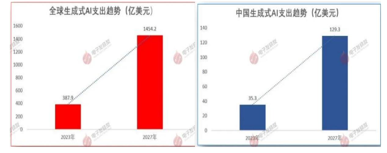 D)由于大模型算力效率优化的进步,根据电子发烧友网站的报告预计,未来3年全球和国内生成式AI的需求会较2023年增长3~4倍。由于AI服务器主要 使用 18层及以上PCB板,而且还使用大量高阶HDI板,因此大模型普及将会 持续推动 PCB板需求的快速增长。
