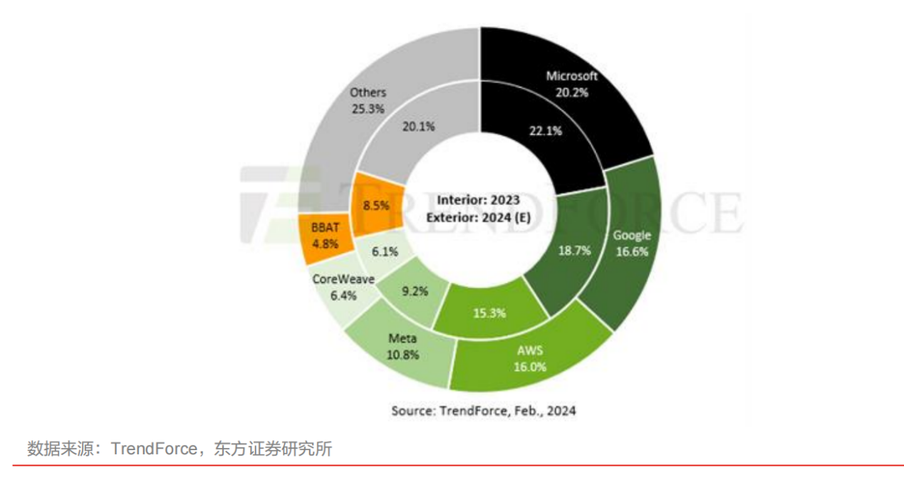 图表2:2023-2024年全球CSP对高阶AI服务器需求占比