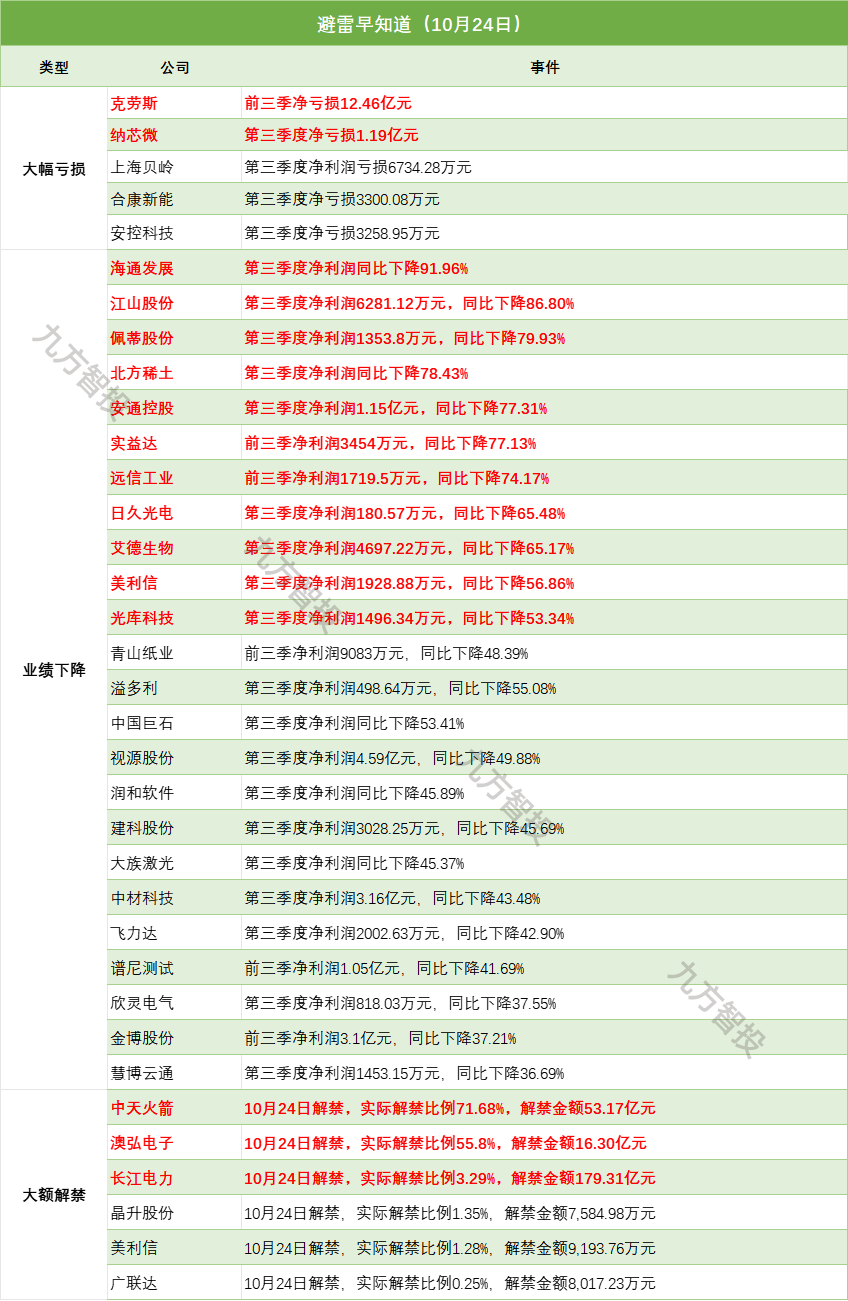 3)长江电力:10月24日解禁,实际解禁比例3.29%,解禁金额179.31亿元