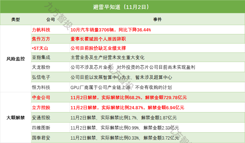 3)中金公司:11月2日解禁,实际解禁比例68.2%,解禁金额729.78亿元