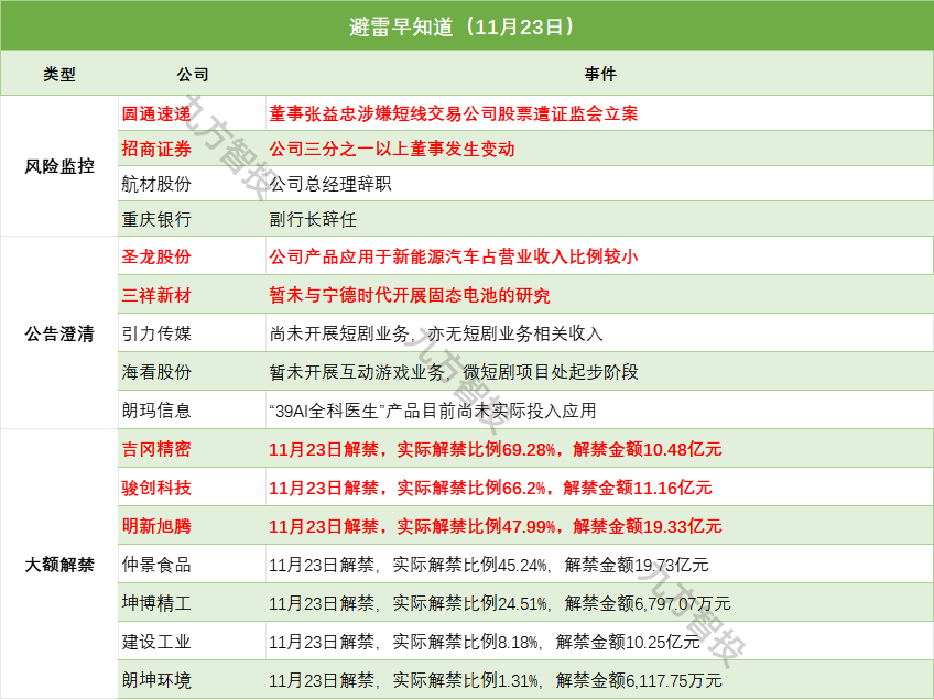 (一)吉冈精密:11月23日解禁,实际解禁比例69.28%,解禁金额10.48亿元