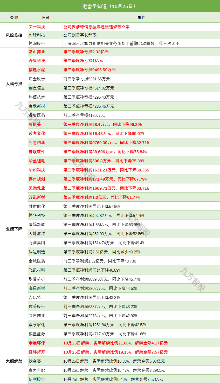 (一)瑞晨环保:10月25日解禁,实际解禁比例21.66%,解禁金额4.17亿元