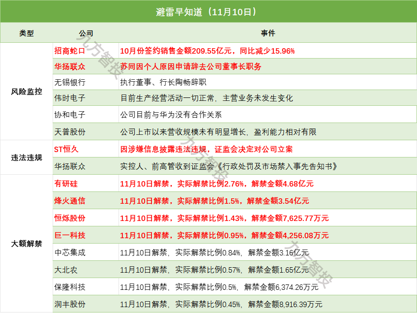 1)招商蛇口:10月份签约销售金额209.55亿元,同比减少15.96%