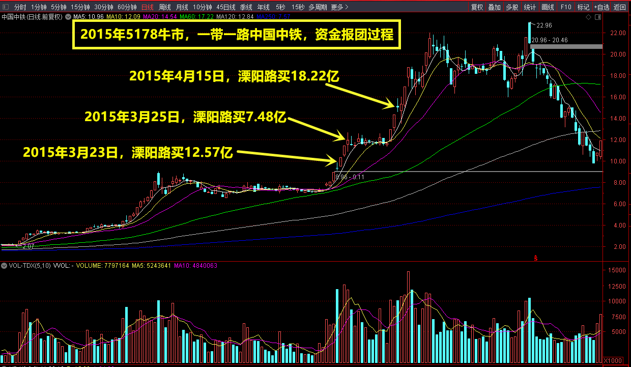 1)2015年3月-6月,A股5178大牛市进入加速期,当时的一带一路龙头中国中铁被资金报团: