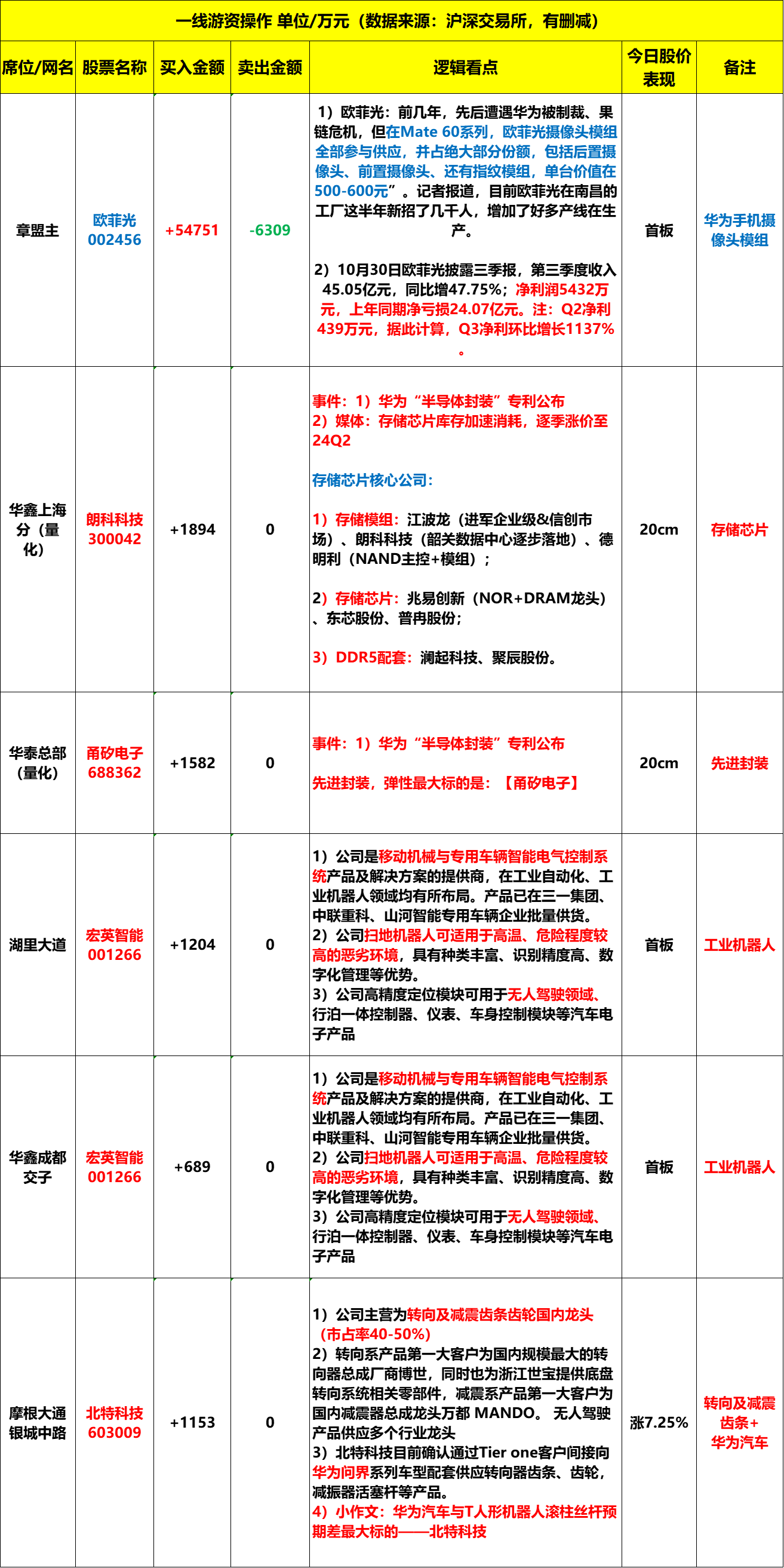 狙击龙虎榜:买买买!章盟主5亿扫货欧菲光