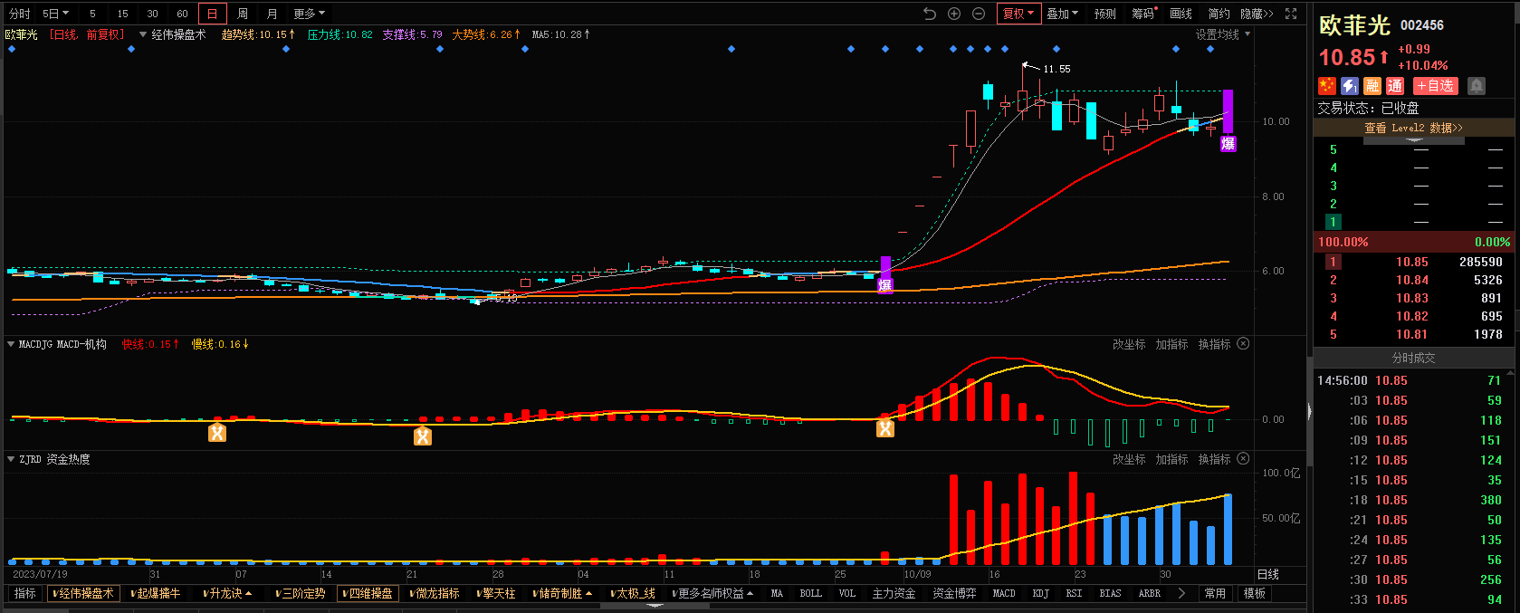 3)参考技术指标:欧菲光-经伟操盘术指标-出现爆点信号
