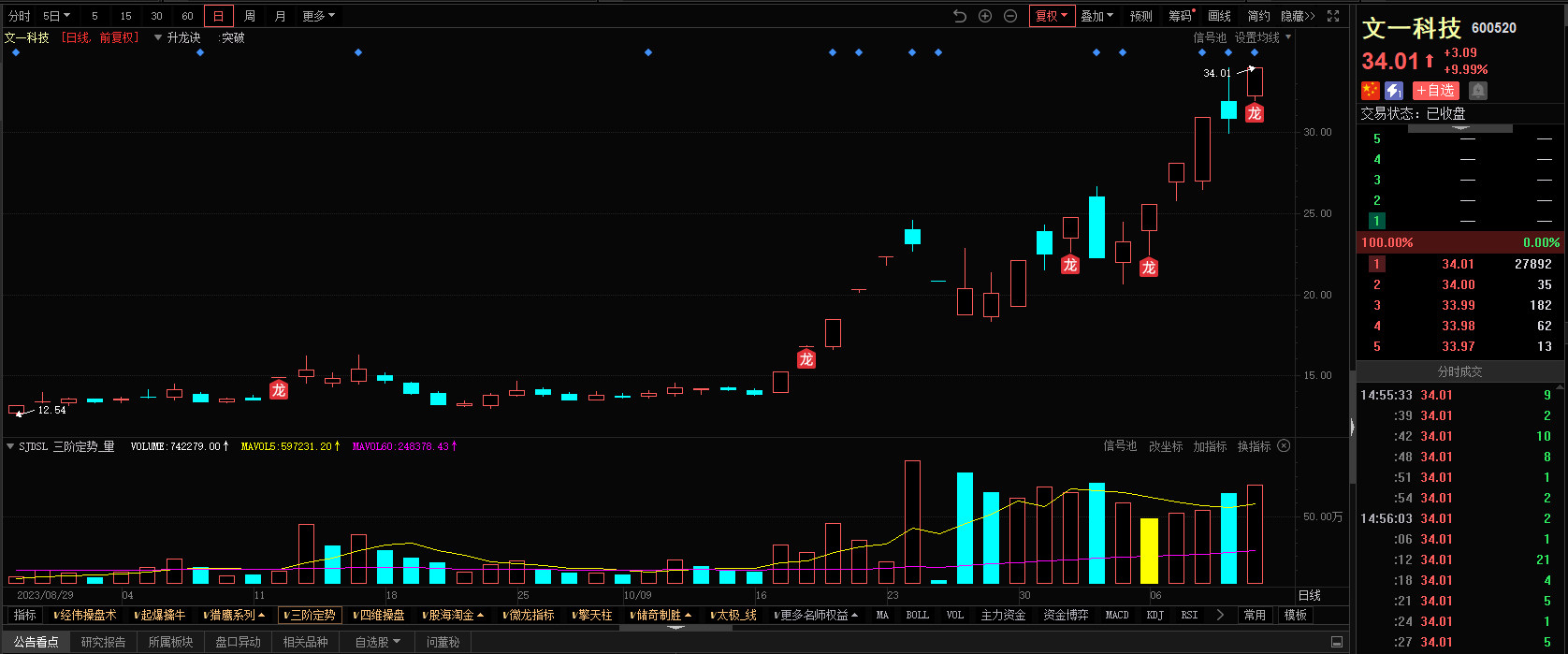 3)参考技术指标:文一科技-升龙诀指标-出现龙信号