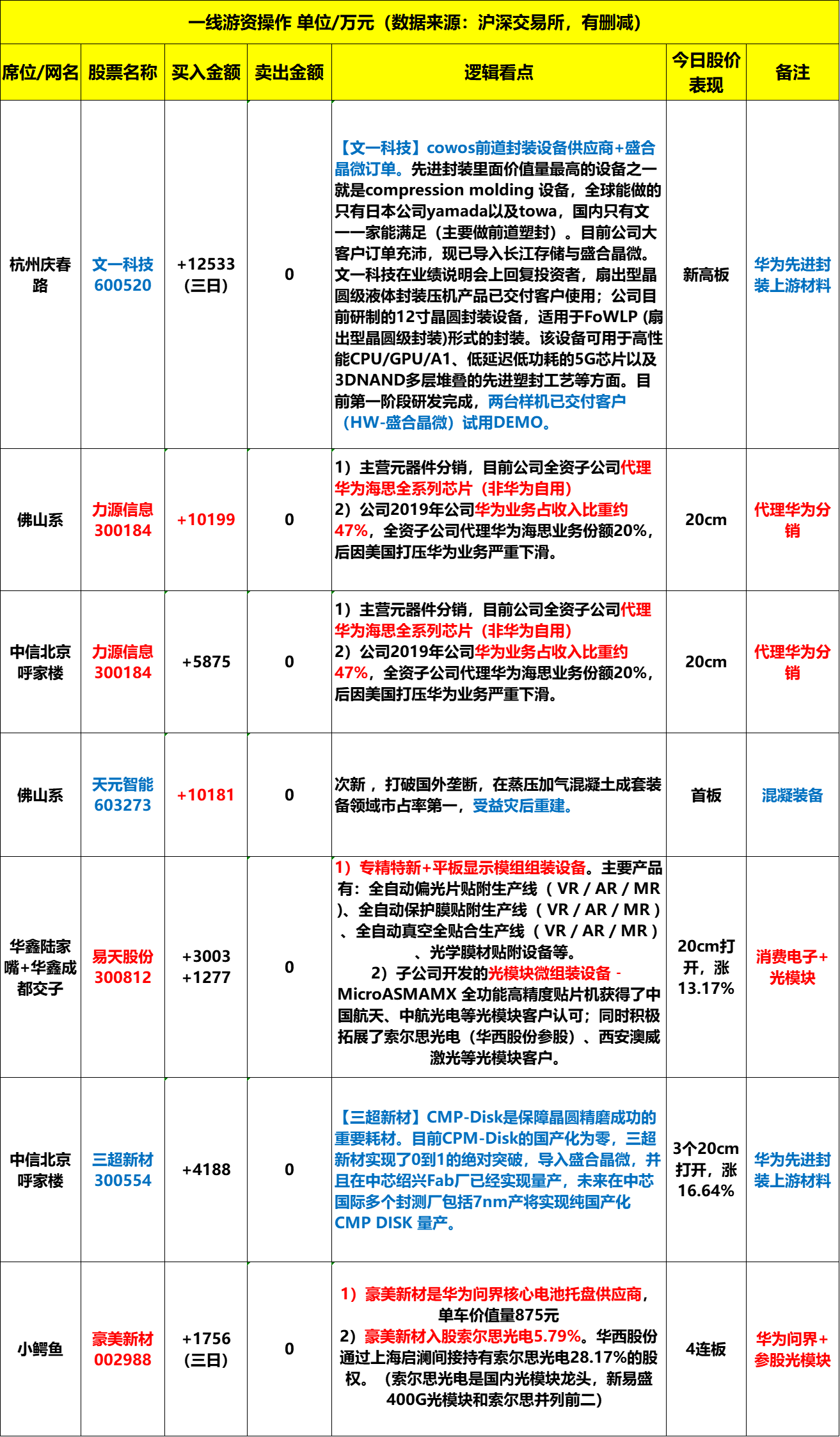 11.10龙虎榜:聪明资金主攻华为上游先进封装设备材料