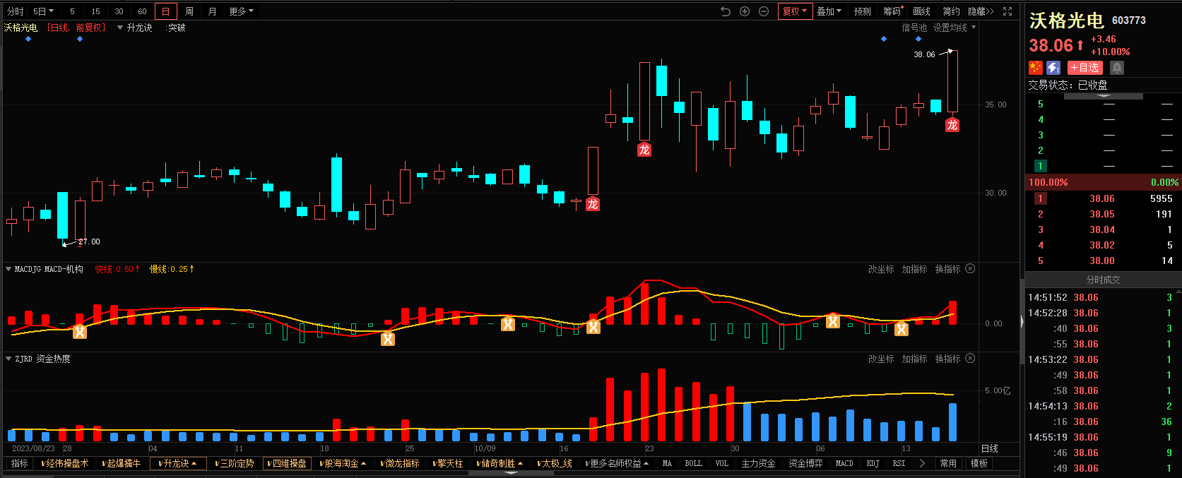 3)参考技术指标:沃格光电-升龙诀指标-出现龙信号