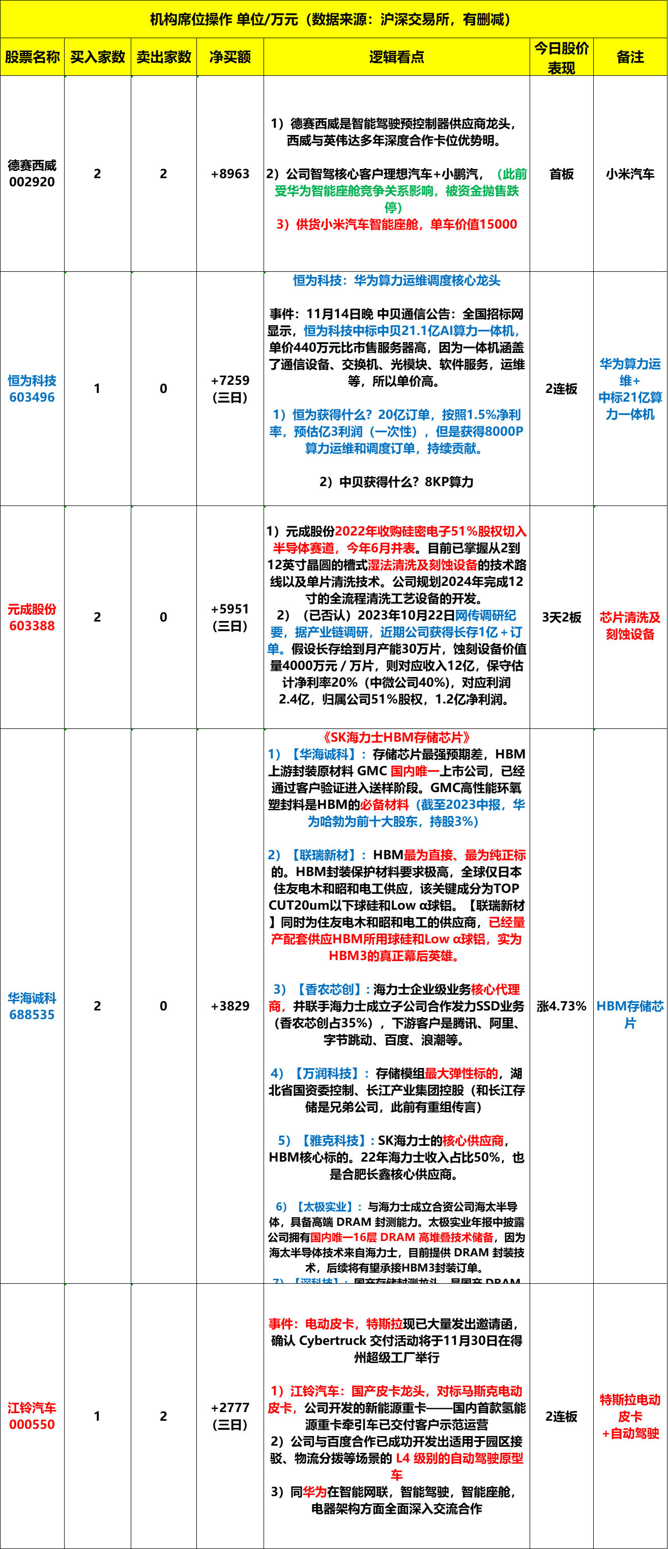 1)核心逻辑:存储芯片最强预期差之一,HBM上游封装原材料GMC国内唯一上市公司,已经通过客户验证进入送样阶段。GMC高性能环氧塑封料是HBM的必备材料(截至2023中报,华为哈勃为前十大股东,持股3%)