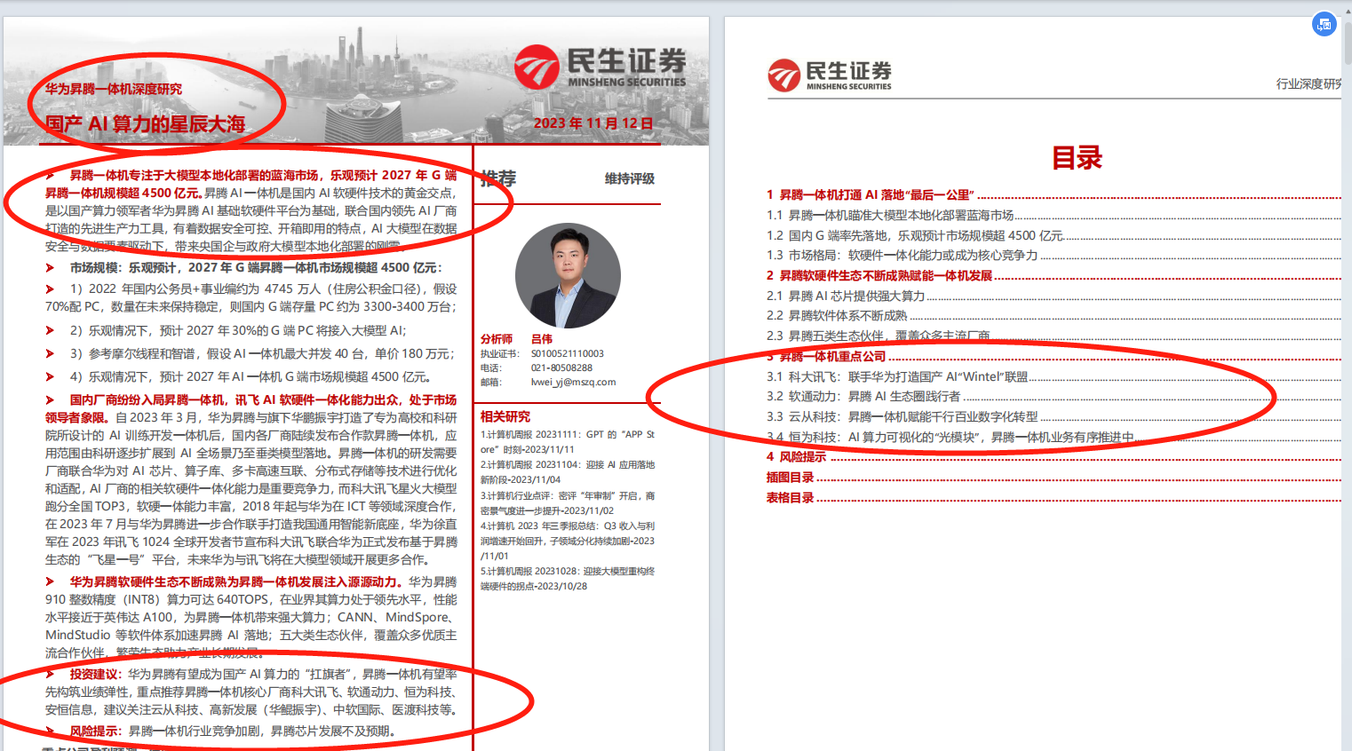 华为昇腾AI一体机,大家可参考民生证券的最新深度报告,下图所示:
