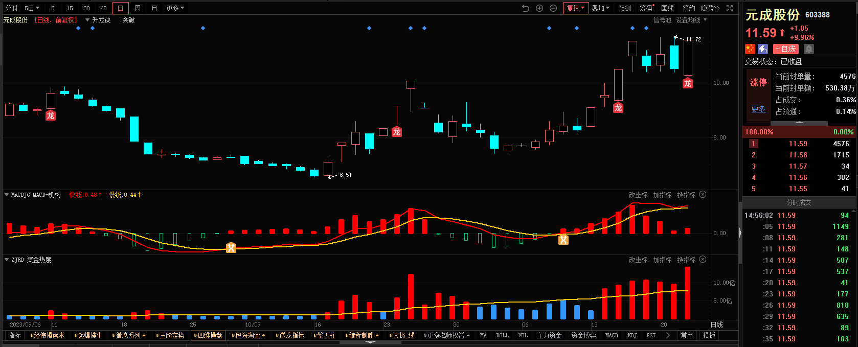 3)参考技术指标:元成股份-升龙诀指标-出现龙信号