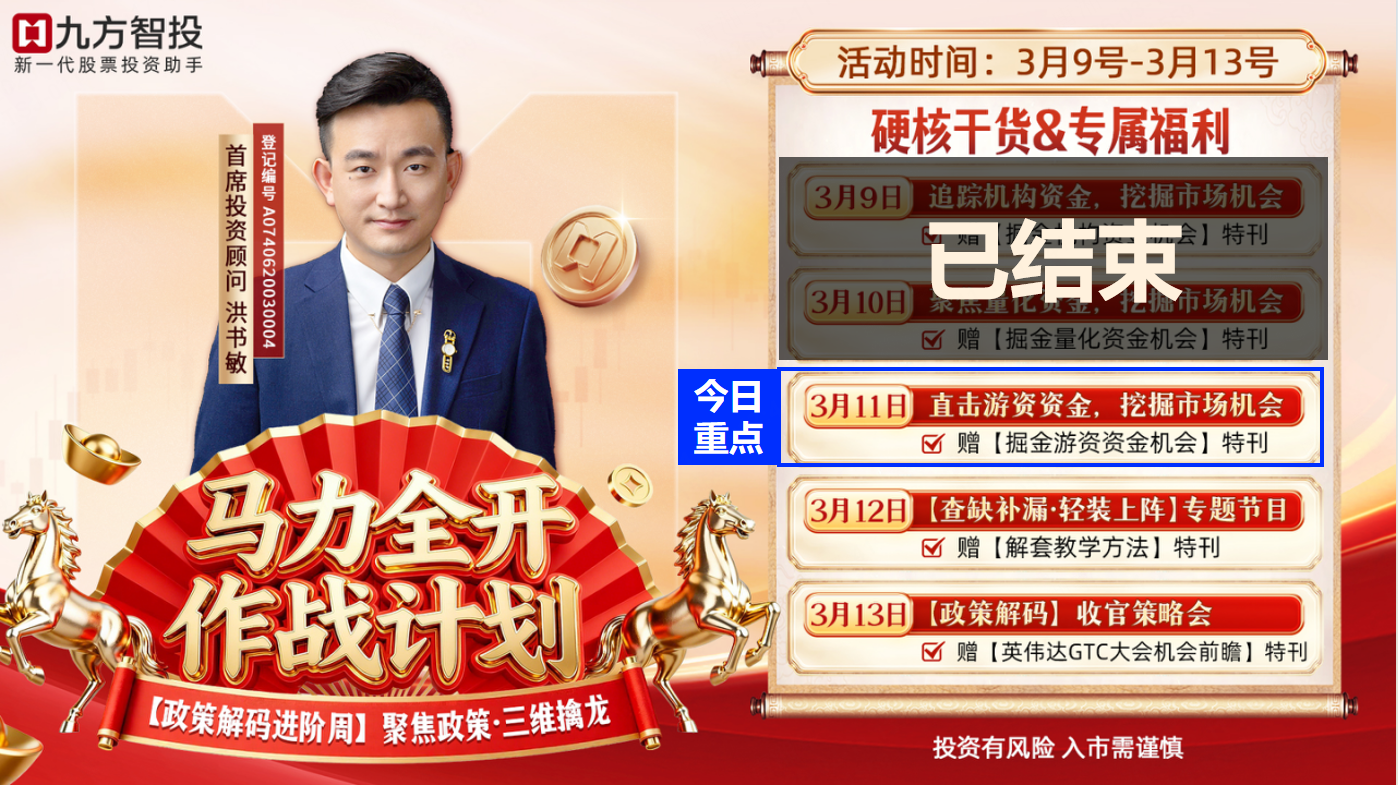 九方智投首席投资顾问。十余年证券市场投研经验,独创结合指数周期、题材周期、情绪周期的价值投机系统,打造出业内独树一帜的情绪龙头战法、趋势短做、题材潜伏三大模式。