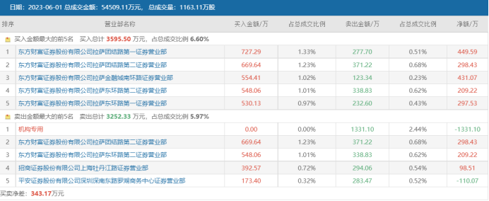 据翔腾新材6月1日龙虎榜数据显示,其上榜营业部席位的成交额合计近6800万元,单日净买额近340万元。买入榜前五席位中,东方财富证券拉萨东环路第一、第二营业部与东方财富证券拉萨团结路第一、第二营业部四个席位累计共净买入近1250万元,东方财富证券拉萨金融城南环路净买入近430万元。而在卖出榜前五席位中,一家机构净卖出近1300万元。