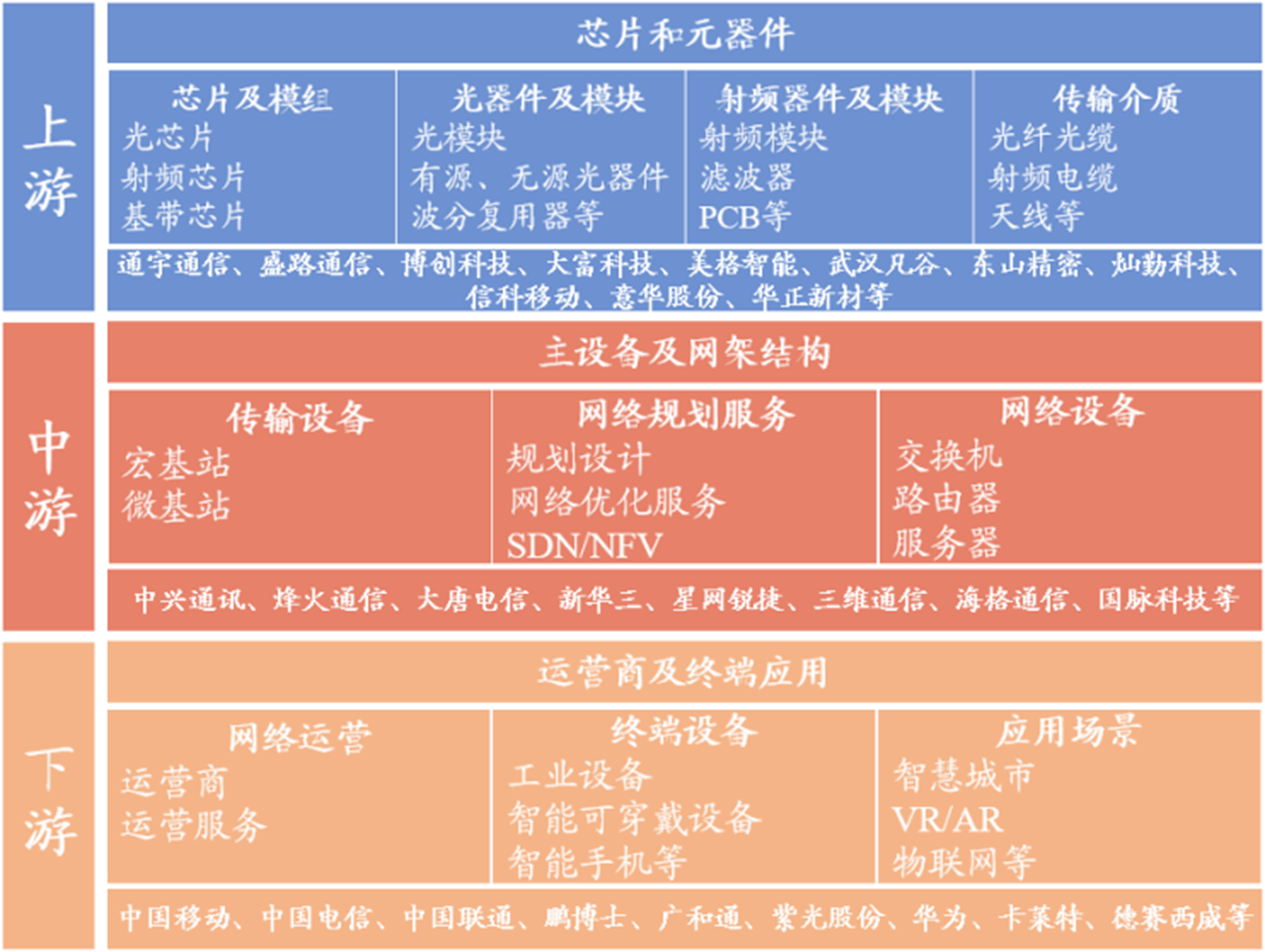 开源证券指出,为了配合5.5G在高频段拓展的趋势以及在速率、带宽等方面的升级要求,高频段需要做硬件升级。原有5G基站的基础设施及主设备等变化不大,预计针对垂直应用的建设以及小基站的扩容将一直持续到2030年6G商用的到来。垂直应用的建设主要集中在产业链的上游和产业链的下游,一方面通过芯片及元器件的改进来实现高频段的提升,另一方面通过下游配套软件升级以及应用场景的赋能来释放5.5G的潜能。