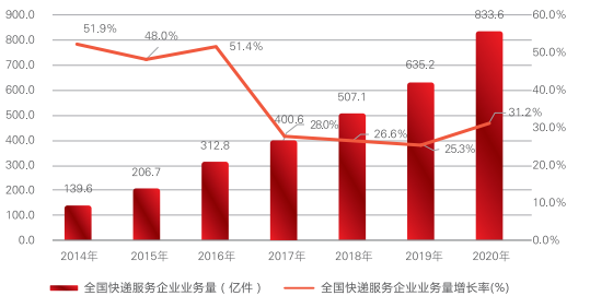 随着我国电商与快递行业的快速发展,公司产品市场发展前景广阔。 国内2020年快递业务量增长再次超过30%,市场对塑料类快递产品的需求也在不断提升。同时公司人士表示:“国外在本次疫情的影响下,电商渗透率大幅提升,市场发展速度较快,未来随着疫情恢复和海运费的降低,海外市场或将有较高增长。”
