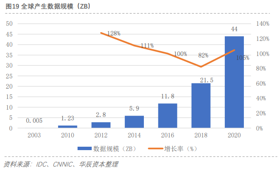 在互联网快速普及、物联网加速渗透的背景下,全球数据呈现倍数增长、海量集聚的特点。根据IDC统计,2016年全球创建和复制的数据总量为11.8ZB,预计2020年将达到44ZB,到2025年,更可能扩展至163ZB。