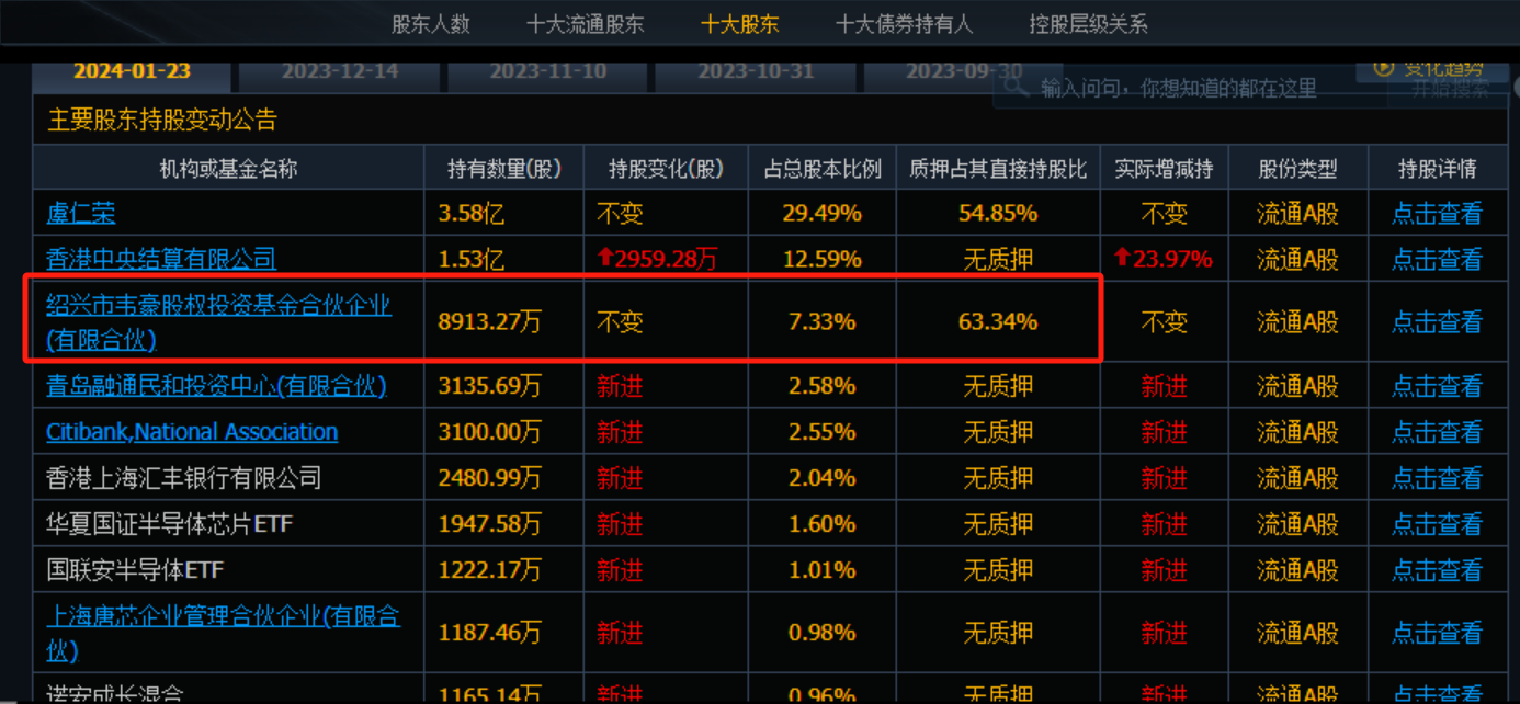 公开资料显示,韦尔股份主营业务为半导体分立器件和电源管理IC等产品的研发设计。截至1月23日,绍兴韦豪持有韦尔股份8913.27万股,占总股本7.33%。捐赠完成后,绍兴韦豪持股数量为7413.27万股,占总股本6.1%,仍为公司的第三大股东。