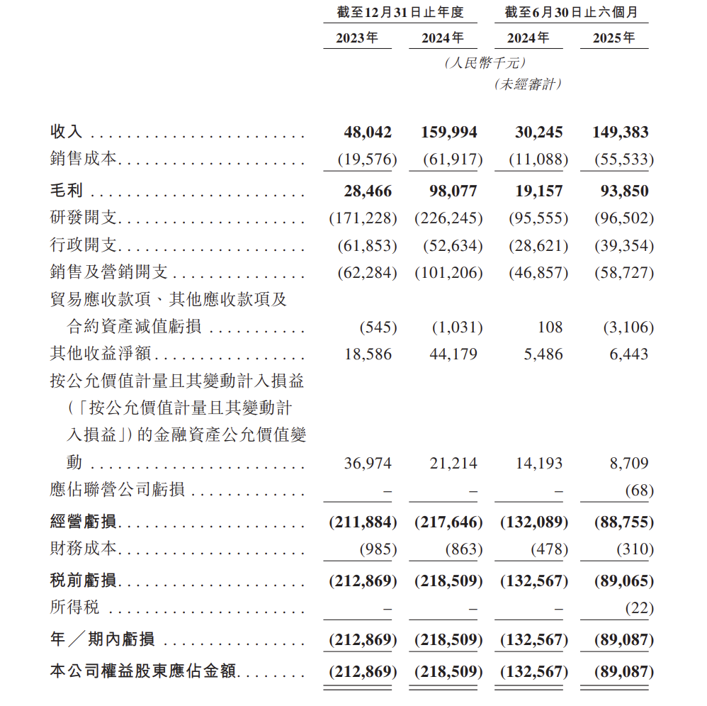 财务数据显示,2023 年-2025年上半年,精锋医疗分别实现营业收入4804.20万元、1.60亿元、1.49亿元;期内亏损分别为 2.13亿元、2.19亿元、8908.7万元;对应毛利则为2846.6万元、9807.7万元、9385.0万元。研发投入方面,上述阶段公司研发费用分别达1.71亿元、2.26亿元、0.97亿元。