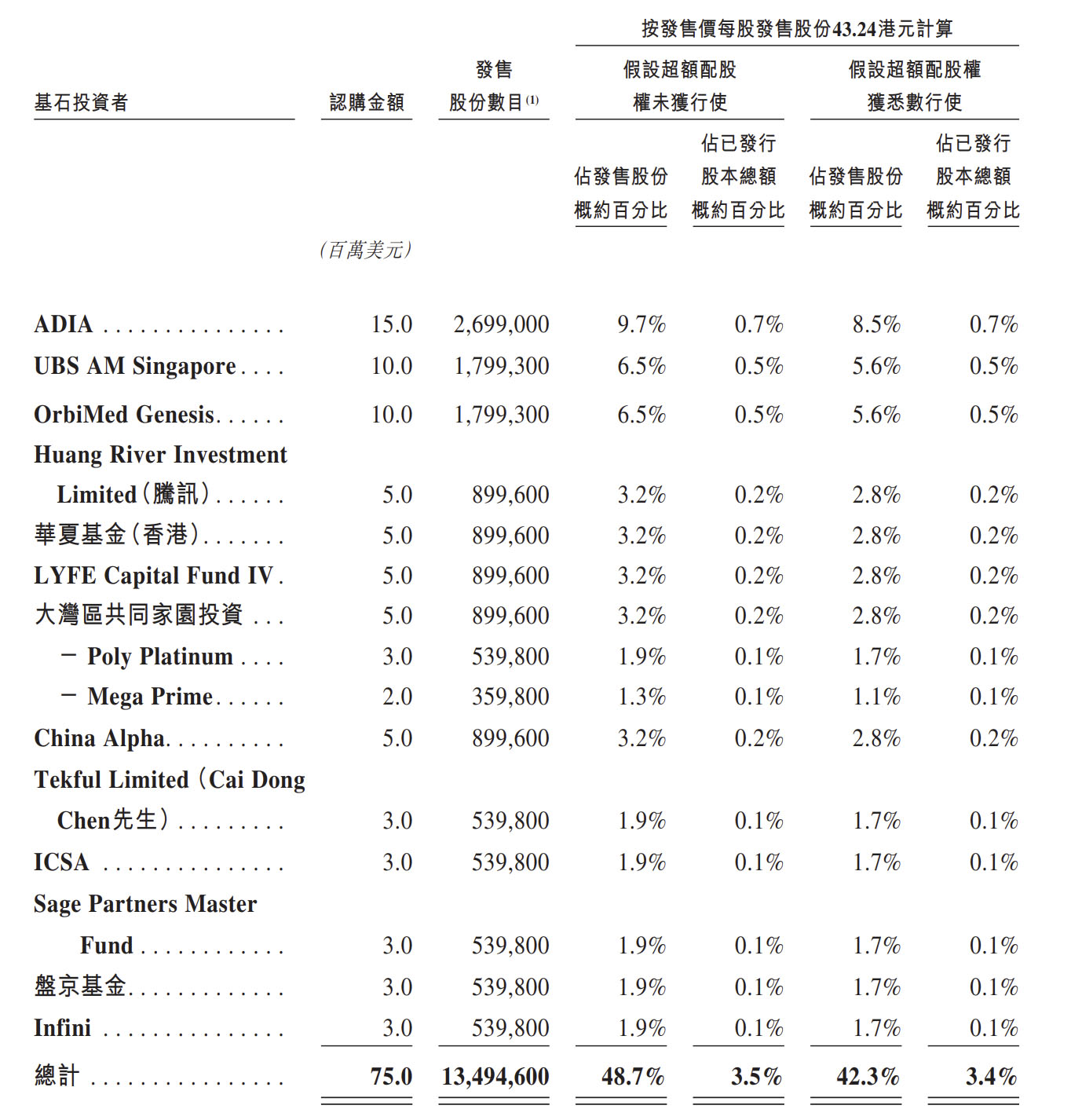 值得一提的是,精锋医疗本次港股IPO引入超十位基石投资者,阵容涵盖中东资本ADIA、UBS AM Singapore、奥博资本旗下 OrbiMed Genesis、腾讯旗下Huang River Investment、华夏基金、大湾区共同家园投资及盘京基金等,合计认购金额达7500万美元。