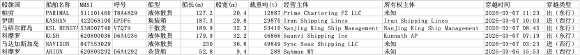 根据中远海科(002401.SZ)船视宝霍尔木兹海峡船舶洞察数据,截至3月7日14时左右,近24小时内通过霍尔木兹海峡的船舶仅6艘次(1艘集装箱船,其余基本为散杂货、液散货船)。从趋势来看,自中东冲突以来,霍尔木兹海峡通行量出现断崖式下降,2月28日为120艘次,3月2日时降至5艘次;3月2日以来,仅3月5日达到了12艘次,其余日期通行量仍为个位数。
