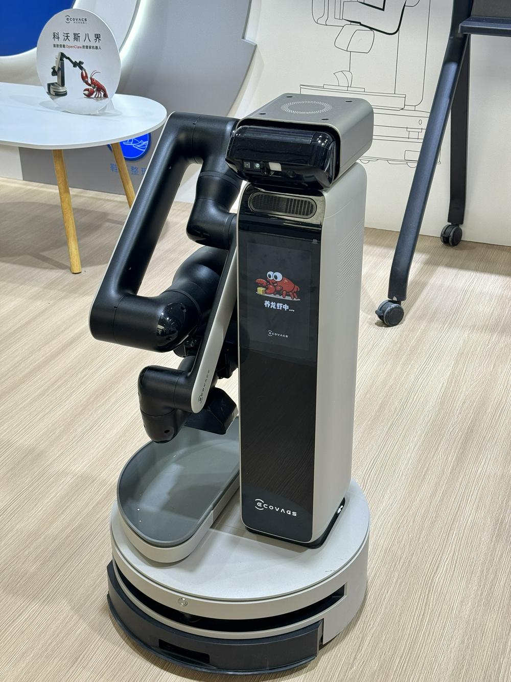 据工作人员介绍,该机器人配备可滑行底座和夹取机械臂,可适用于洗衣、玩具收纳、取物递物、鞋子整理、桌面整理等多个家庭场景。“搭载‘龙虾’后,产品会更智能,用户可以根据自身需求定制服务,不仅局限于这5个基础场景。”