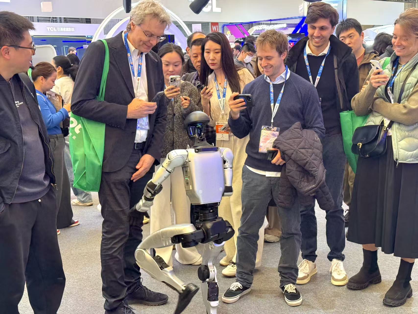尽管此次现场展示的内容并无明显迭代,但凭借成熟的运动控制能力和稳定的现场表现,展台前仍围满观众,不少人举起手机记录机器人的每一个动作。