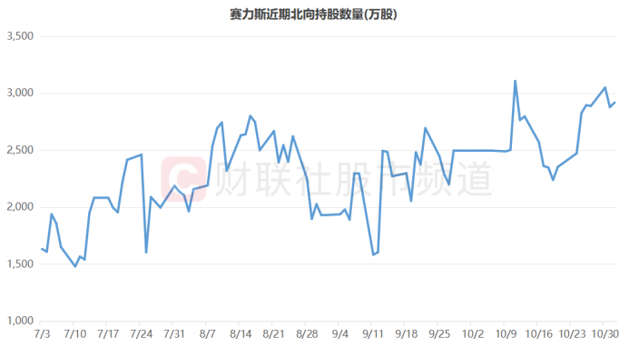 此外,同为汽车赛道人气股的赛力斯近日也再度活跃,其今日盘中最高价89.88元,离去年年中录得的历史最高价90.5元只差一步之遥。作为华为汽车概念的人气总龙头,赛力斯自今年6月开始走强,累计至今上涨幅度已超2倍,总市值也重新迈入千亿元俱乐部。从资金面来看,其近期获北向资金的重点关注,截至11月1日数据,赛力斯北向持股量较之此前9月低点增长近1倍。