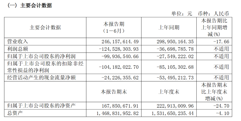 《科创板日报》8月13日讯(记者 吴旭光) 8月12日晚间,昀冢科技发布半年报显示,今年上半年,该公司实现营业收入为2.46亿元,较去年同期下滑17.66%;实现净利润为-9993.65万,较去年同期下滑262.76%。