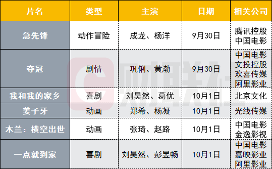梳理黄金周档期即将上映的电影及其背后的上市公司如下: