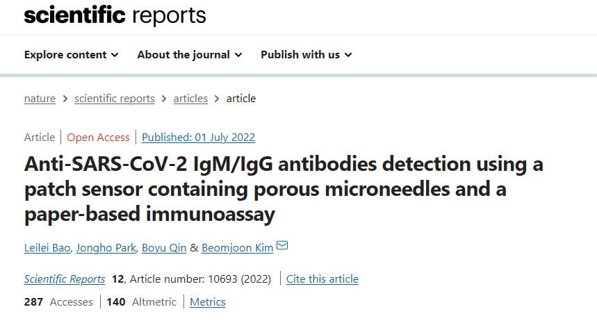 “然后,我们构建了一个基于纸张的免疫测定生物传感器,用于检测SARS-CoV-2特异性抗体。通过整合这两个元素,我们创造了一个紧凑的贴片,它能在3分钟内对抗体进行现场检测。”他补充说。