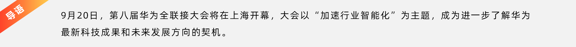 9月20日至22日,华为全联接大会将在上海举办,大会以“加速行业智能化”为主题,邀请思想领袖、商业精英、技术专家、合作伙伴、开发者等,从商业、产业、生态等方面探讨如何加速行业智能化。详情>>