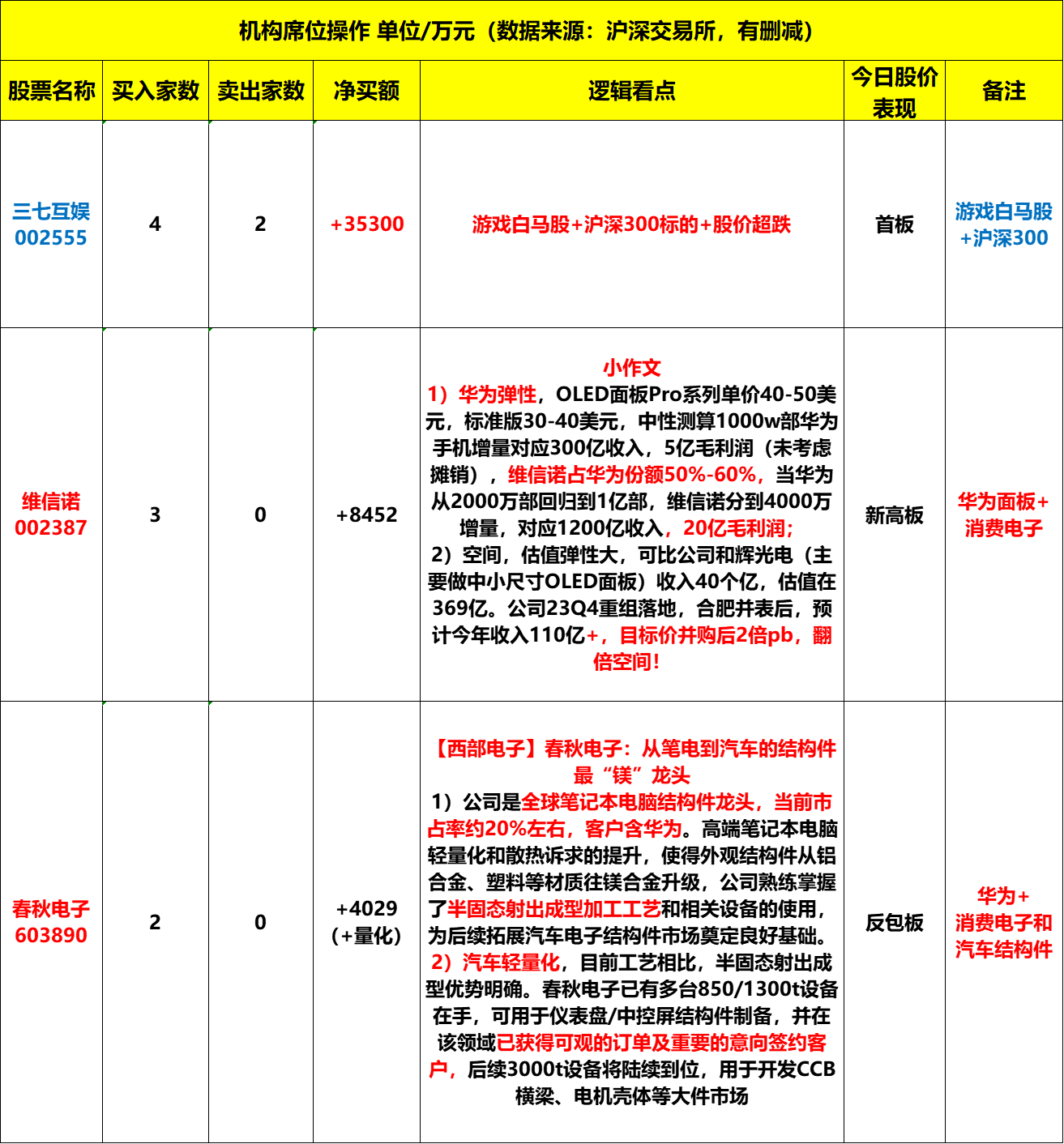 龙虎榜:大资金加仓消费电子!机构大买三七互娱