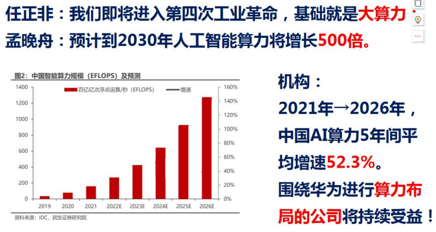 华为在AI算力领域具备强大优势,推出昇腾、鲲鹏AI芯片,其中,昇腾910芯片国内领先,算力已经达到英伟达A100的水平!