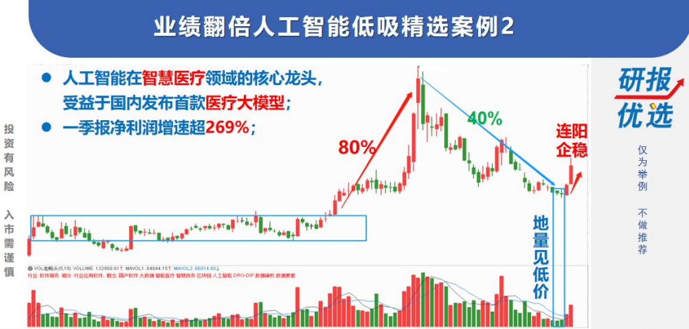 人工智能在智慧医疗领域的核心龙头,受益于国内发布首款医疗大模型;一季报净利润增速超269%;公司为国内“AI+区块链”服务商领军,传统业务2023年有望迎来业绩拐点,同时数据要素交付服务业务放量可期。