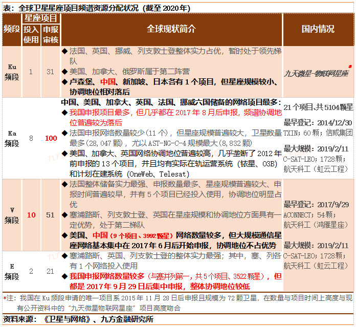 纵观国内外主要星座项目,我国在频谱资源领域的后发特征主要体现在两个方面。