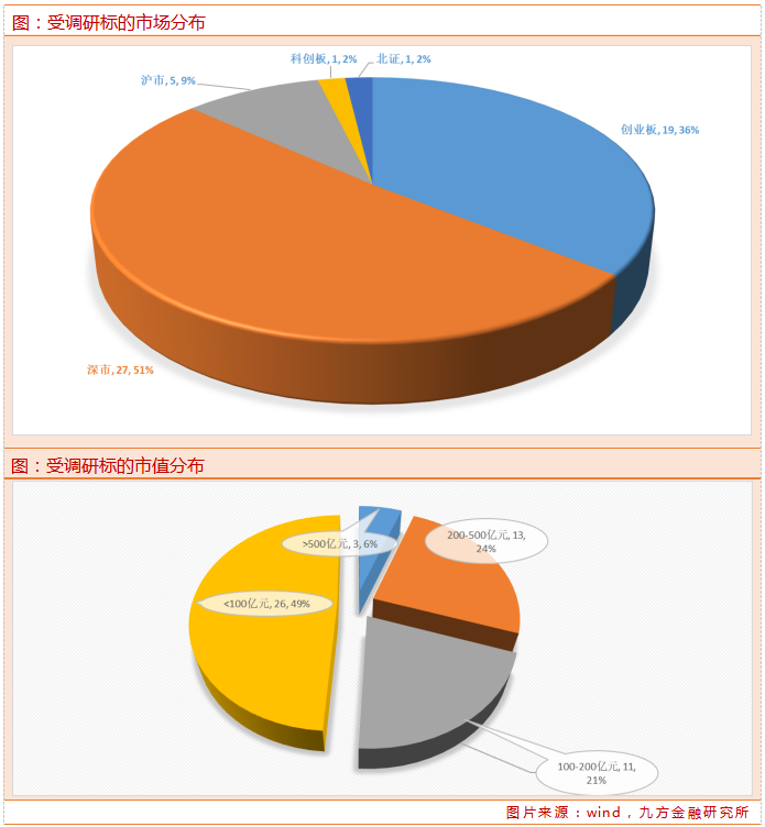 本周(2022.2.5——2022.2.11)机构共调研53家上市公司(上上周68家),环比减少,整体来看,主要还是分布在深市及创业板。